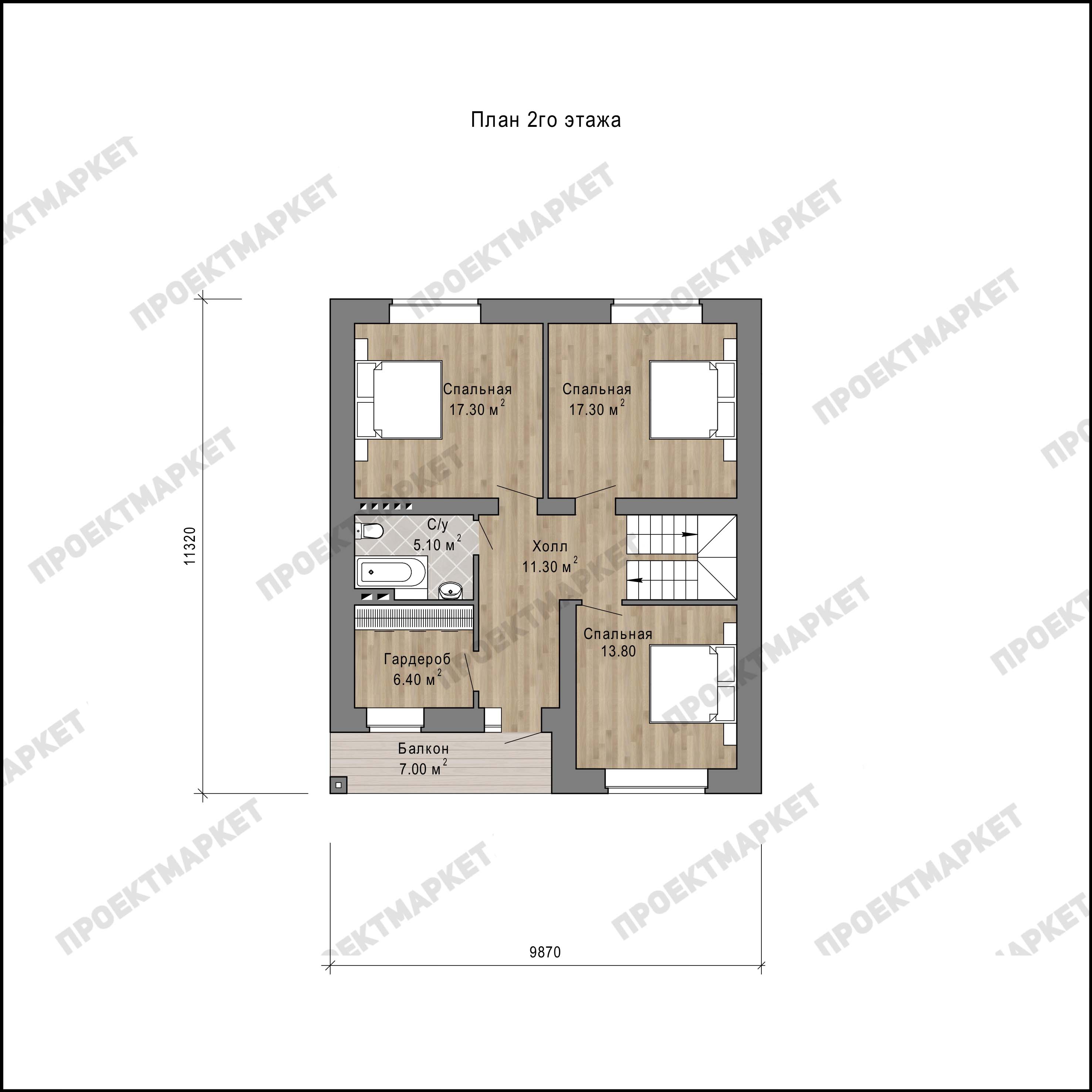 Чтобы сделать свой коттедж просторным, рекомендуем выбрать проект дома 130 кв.м.. Двухэтажный особняк отличается удобным расположением внутренних помещений. Предусмотрен и просторный холл, и балкон, с которого открывается обзор на все ваше домовладение.